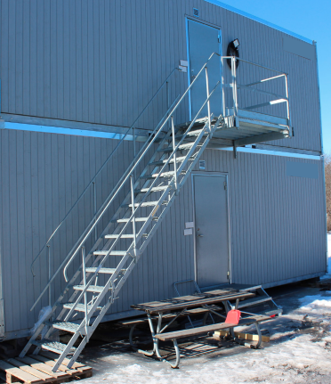 Powerful, flexible, durable platform to create a secure access route or escape route on upstairs floor baracks. Adapted for both our cabbin & evacuationstairs HP2000 / HP2001. Our XL platform is designed for baracks with offset door center, but its also fits center doors.